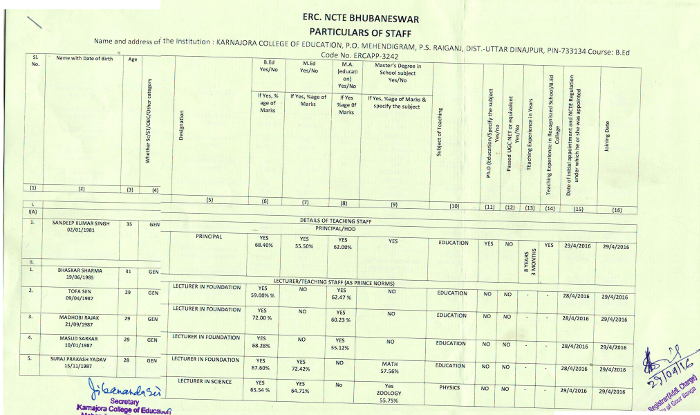 Particular of Staff B.Ed